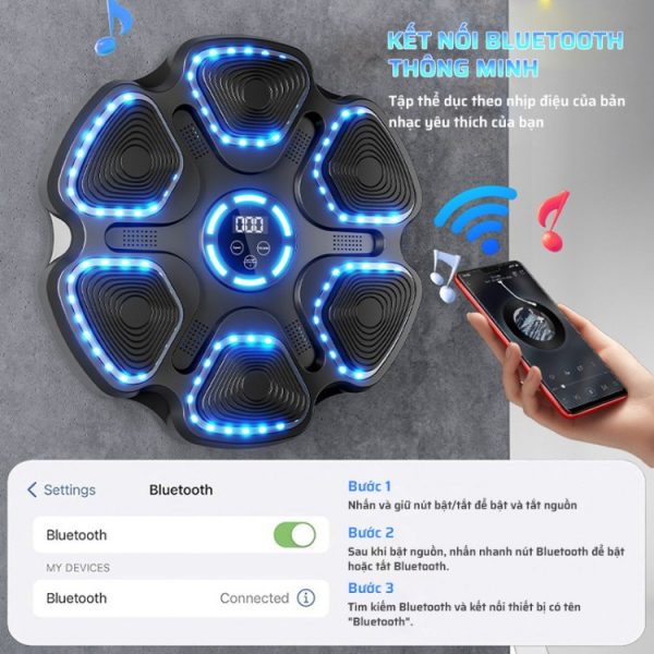 • Tích hợp âm nhạc tạo nhịp điệu: Tính năng nổi bật nhất của máy là tích hợp tính năng kết nối bluetooth để phát âm nhạc theo nhịp điệu. Bạn có thể đấm theo từng giai điệu hoặc thử thách bản thân với các bài tập khác nhau, giúp tăng cường phản xạ và sự tập trung.