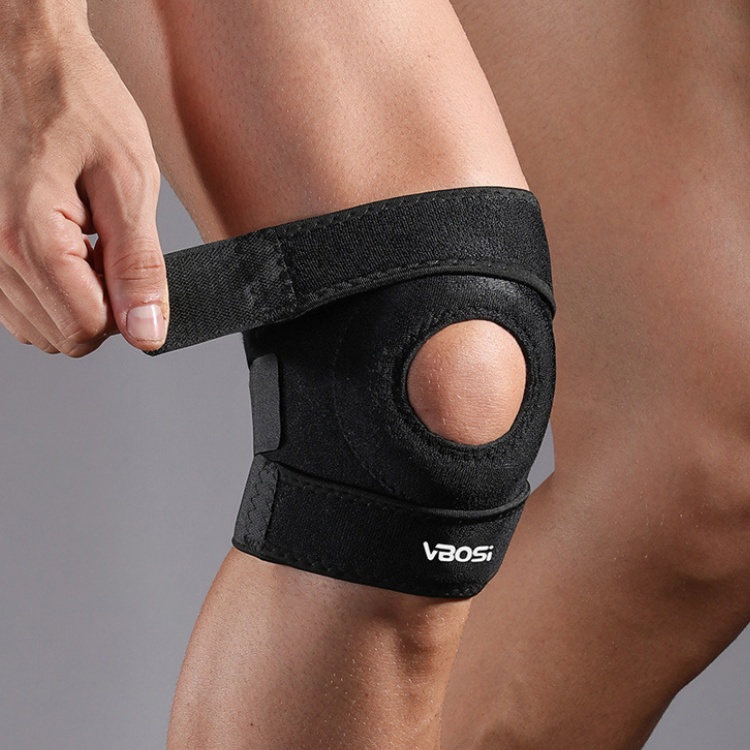 - Đeo băng vào chân, căn chỉnh sao cho phần vòng hở nằm chính giữa xương bánh chè.