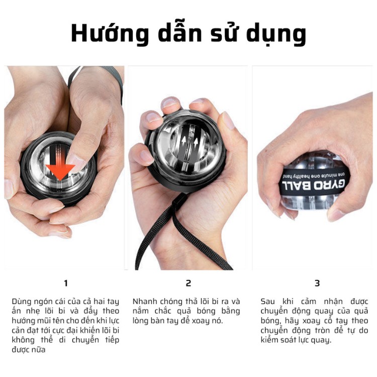 Khi sử dụng Gyro Ball, lực ly tâm được tạo ra từ chuyển động xoay giúp kích thích các nhóm cơ ở cổ tay, bàn tay và cẳng tay. Việc tập luyện thường xuyên sẽ giúp bạn tăng cường sức mạnh và sự dẻo dai của các cơ này.