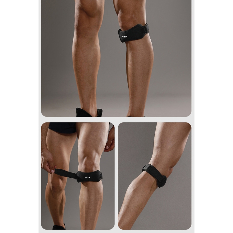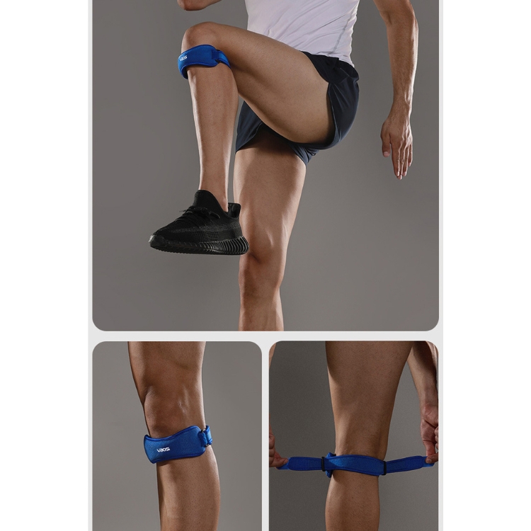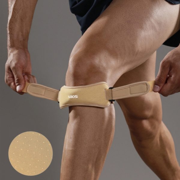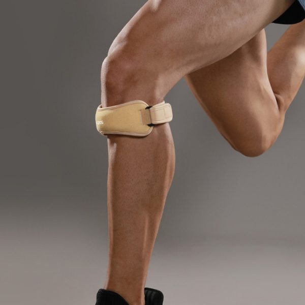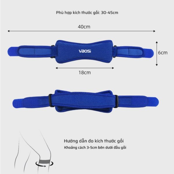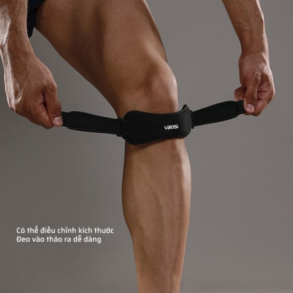 1. Quấn đai quanh đầu gối, căn chỉnh sao cho phần giữa của đai nằm ngay xương bánh chè.