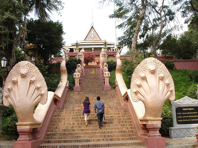 9h00 khởi hành tham quan Chùa Wat Phnom một trong những ngồi chua linh thiên, tìm hiểu về lịch sử tên gọi Thủ Đô Phnom Penh. 9h30 di chuyển vào Hoàn Cung còn được gọi là Chùa Vàng – Chùa Bạc.