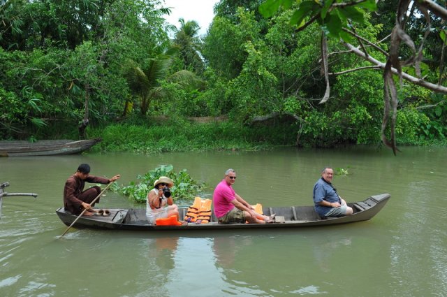 Dùng xuồng chèo ( xuồng ba lá ) hay xuồng bá lá len lỏi trong rạch nhỏ ngắm nhìn phong cảnh bình dị vùng sông nước, đến tham quan trại nuôi ong mật, thưởng thức trà mật ong, rượu chuối hột…